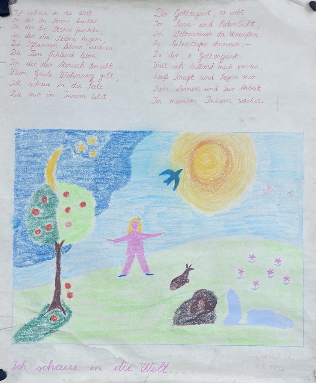 Unabhängig von deinen Intentionen habe ich deswegen nachfolgend doch noch vier Originalblätter der Unterrichtsepoche aus dem Mai 1992 eingefügt und sie mit kleinen Bildlegenden im Sinne von
