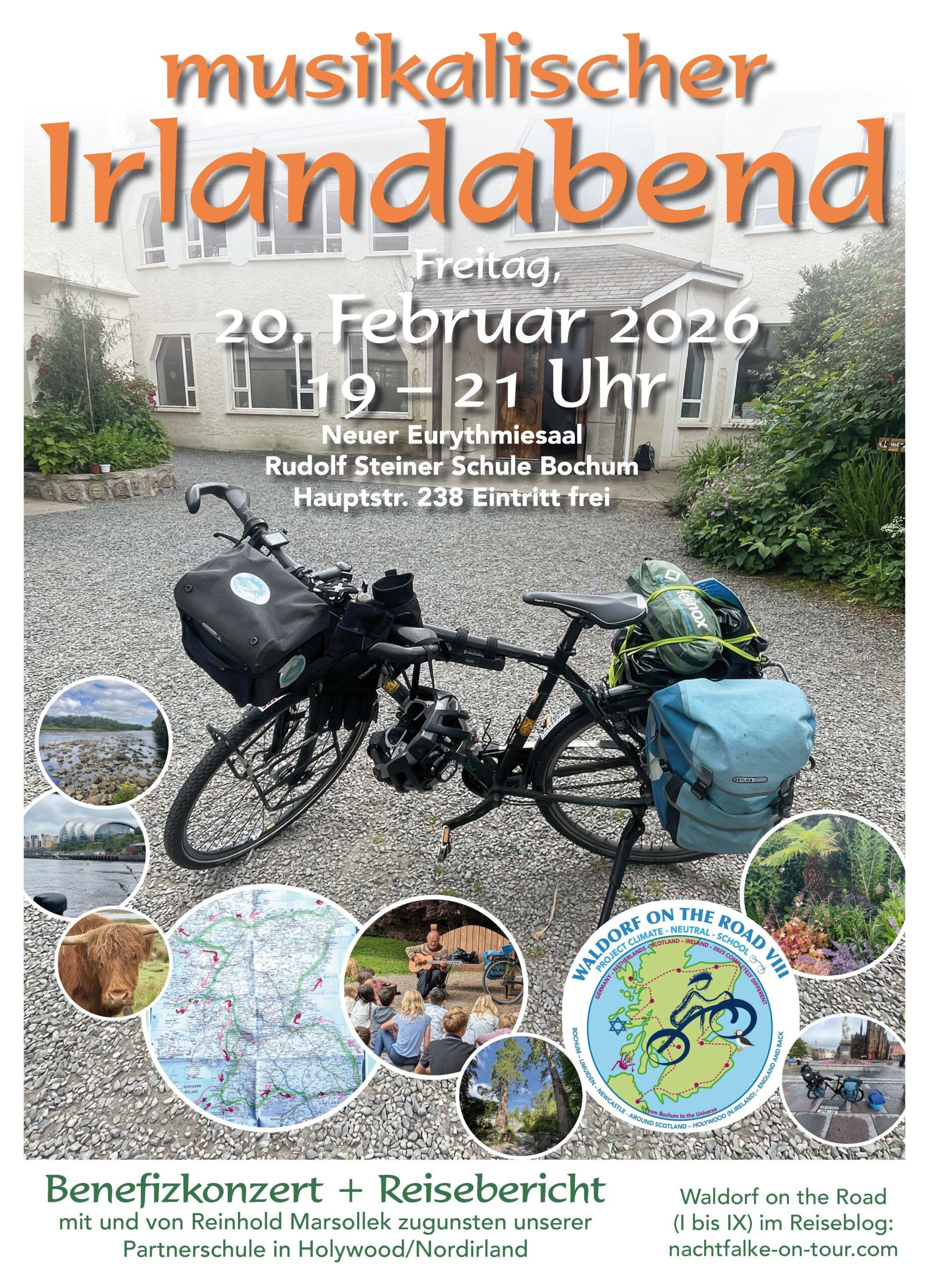 R. Marsollek: Die achte(!) „From Bochum to the Universe“ Tour: FAHRRAD, ZELT, REISEGITARRE und 3000 km rund um Schottland mit Besuch der Steiner School in Holywood zu Mittsommer 2025. EIN (AUCH) MUSIKALISCHER „IRLANDABEND“ ZUGUNSTEN UNSERER PARTNERSCHULE IN HOLYWOOD BEI BELFAST.