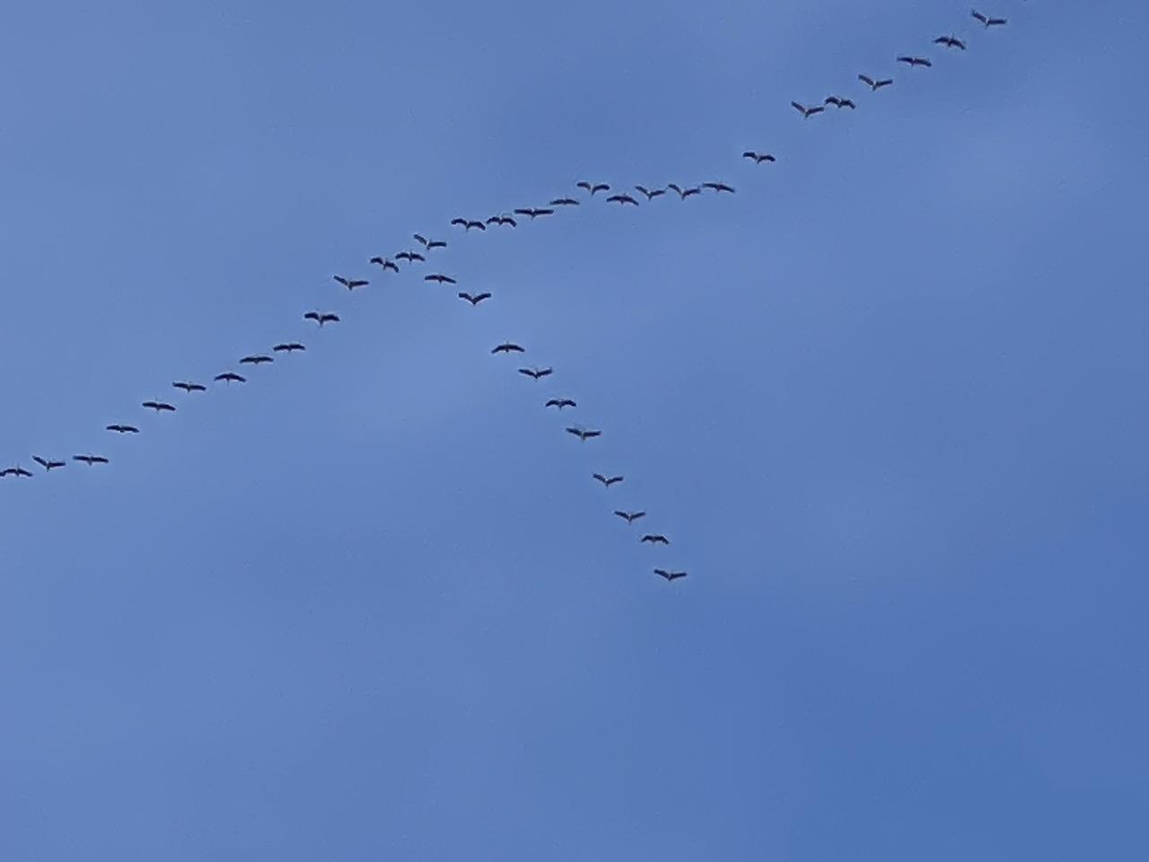 Ob die auf dem Weg in den Nordosten den Tippelsberg als Landmarke passierenden Kraniche finnisch verstehen, weiß ich nicht. Deren Marschroute stimmt aber…