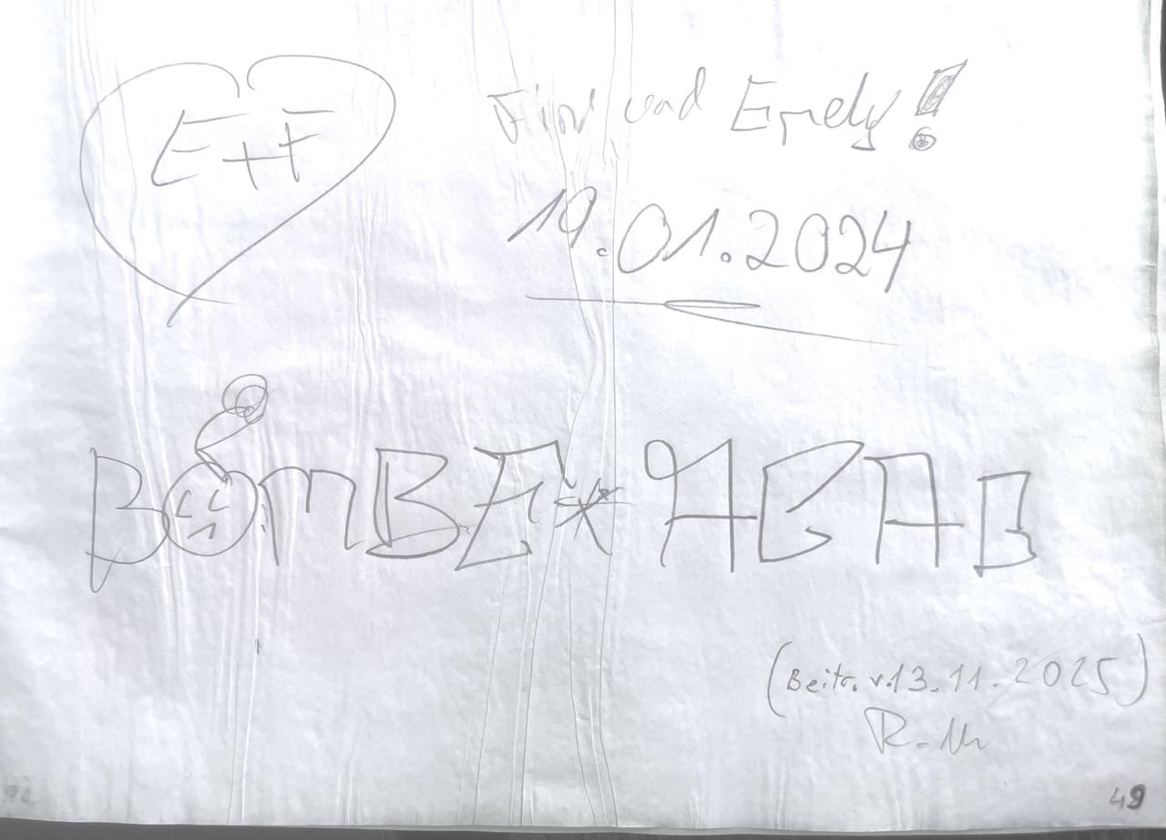 504: 16.02.2025 „52, das Beste zuletzt“ meinte der „Neubankbesitzer“, welcher zwar noch nichts von der Intention der Bank gelesen, sich aber schon mal „numerisch“ auf der letzten Seite von Band Nr. 36 verewigte. Vielleicht hat er sich aber doch noch Einblick gewährt?…