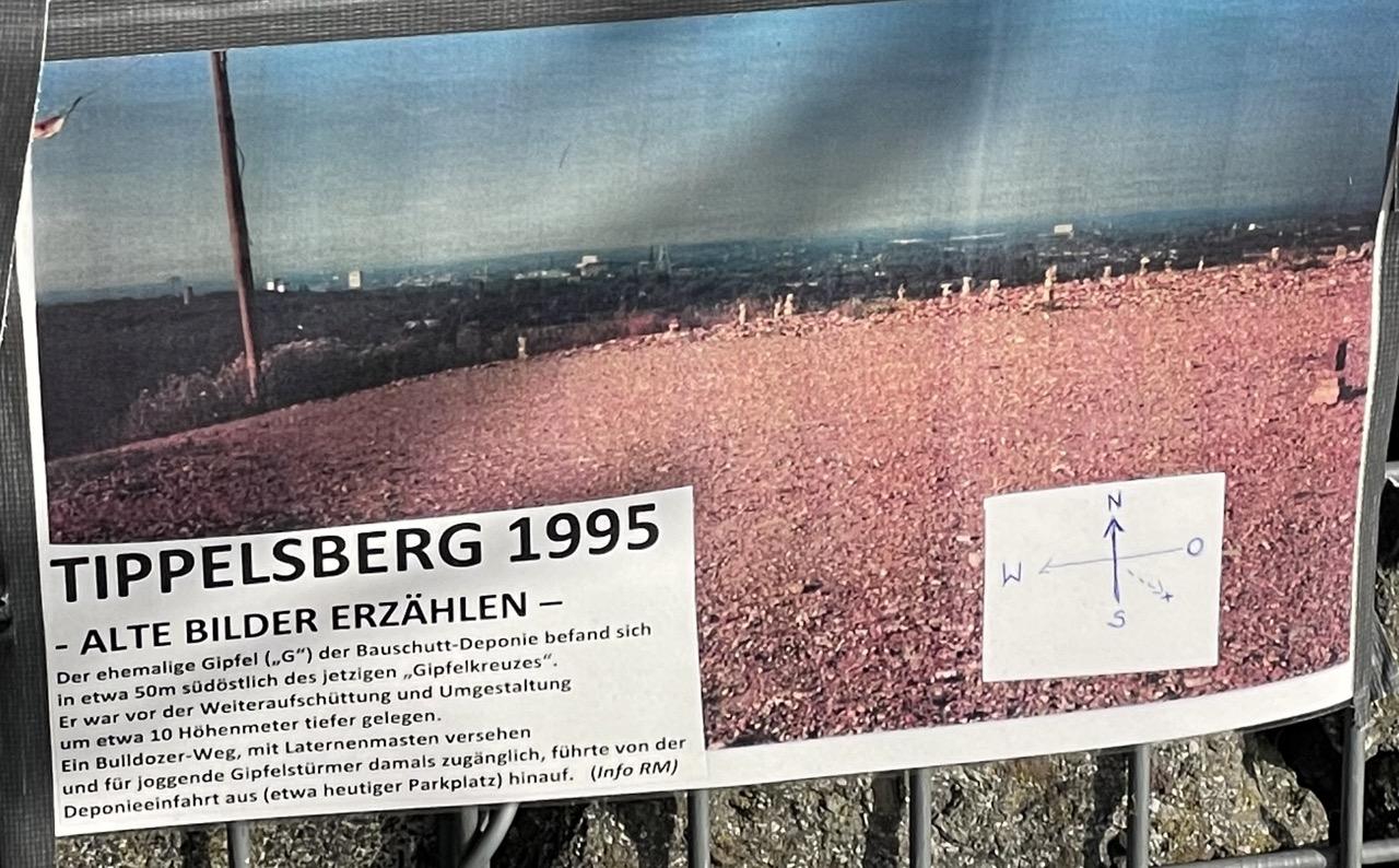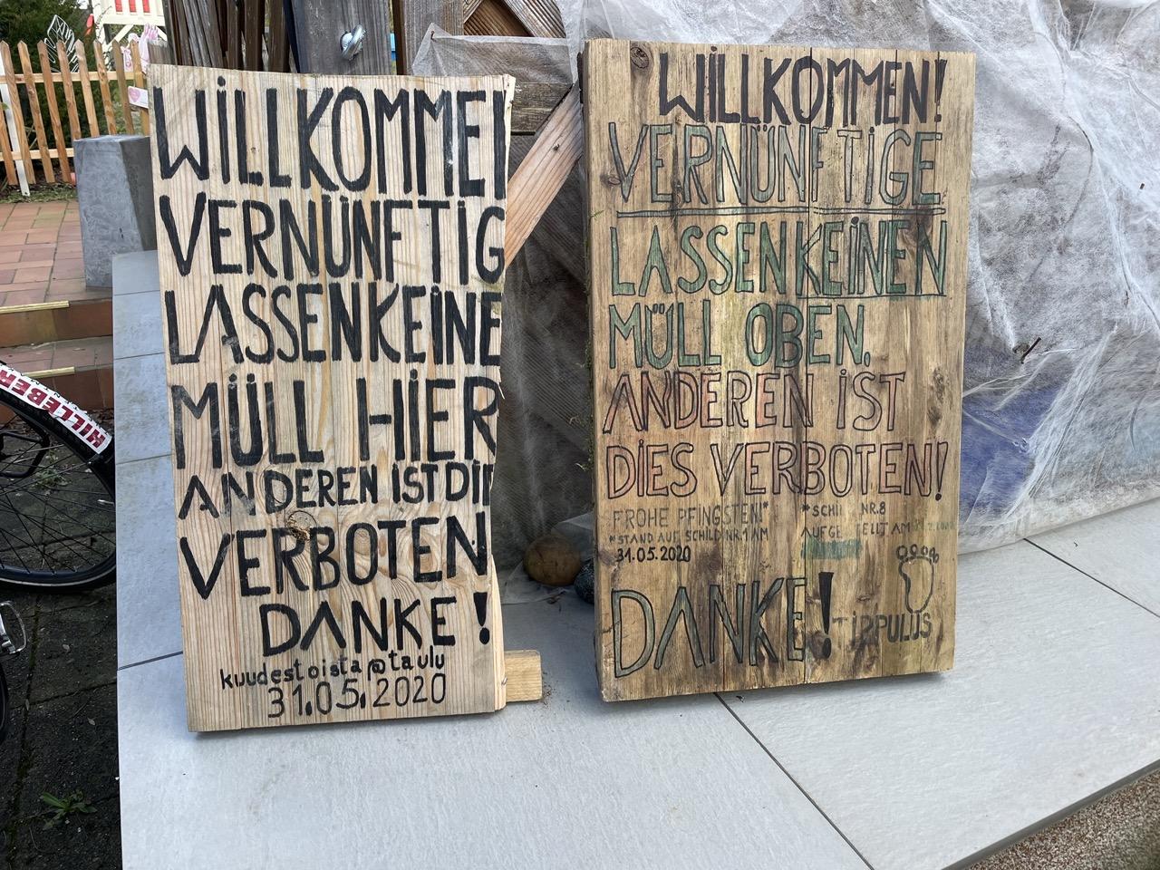 Die zwei auf dem Gipfelplateau aufgestellten Holzschilder tragen (unten vermerkt) ihr erstes Aufstelldatum 31.05.2020 bzw. 29.09.2021. Während aber das Schild „Vernünftige…“ bis November 2020 sechsmal verbrannt, vernichtet wurde oder verschwand, verbleiben beide Schilder dort jetzt unbehelligt teilweise über Jahre hinweg. Das schon einmal verschwundene und Mitte August 2025 wiederaufgetauchte Schild Nr. 15 fand ich an diesem Neujahrstag zerstört vor. Das „Vernünftige…“-Schild Nr. 16 „sorgt“ dort seit dem 2. Januar 2026 für Ordnung. Aber das Schild „Willkommen…“ Nr. 7 wurde in der Silvesternacht von JEMAND(danke!) wiedergefunden und tauchte am Neujahrstag nach über dreijähriger Abwesenheit wieder auf. Ich werde es (nachdem es getrocknet ist) überarbeiten und gegen das dort seit etwa einem Jahr „wachende“ Nachfolgeschild Nr. 11 austauschen.